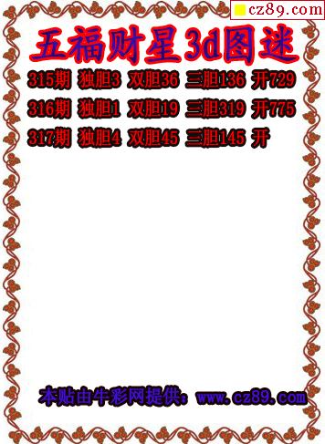 > 五福财星三胆2025317期3d图谜(原创)