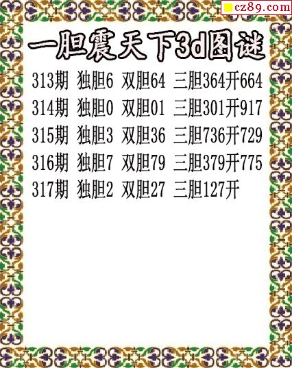 > 一胆震天下独胆2025317期3d图谜(原创)