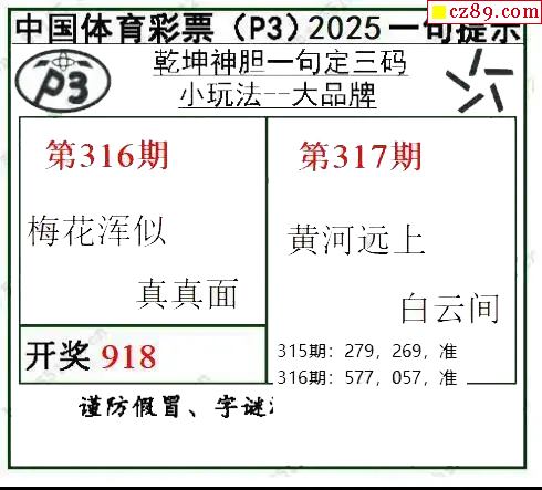 2025年317期牛彩网体彩P3画迷图谜汇总分享