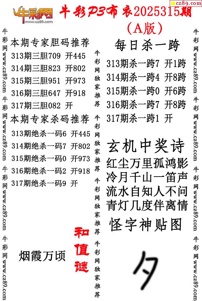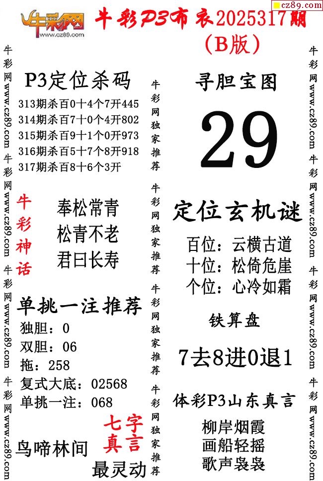 牛彩P3布衣25年317期AB版图谜(精华版)