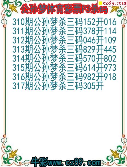 2025年317期牛彩网体彩P3画迷图谜汇总分享