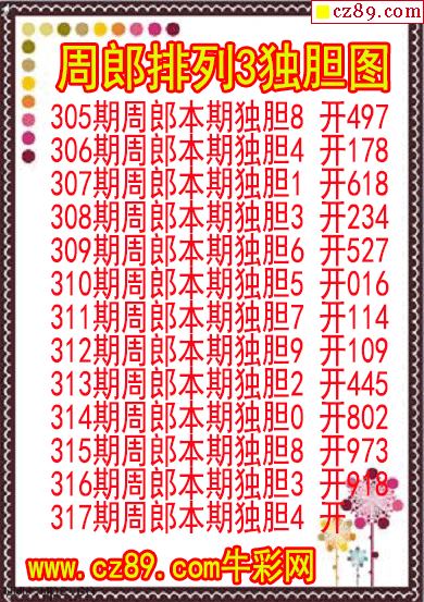 2025年317期牛彩网体彩P3画迷图谜汇总分享